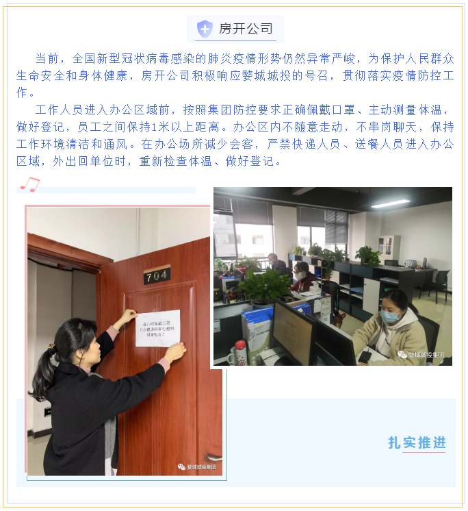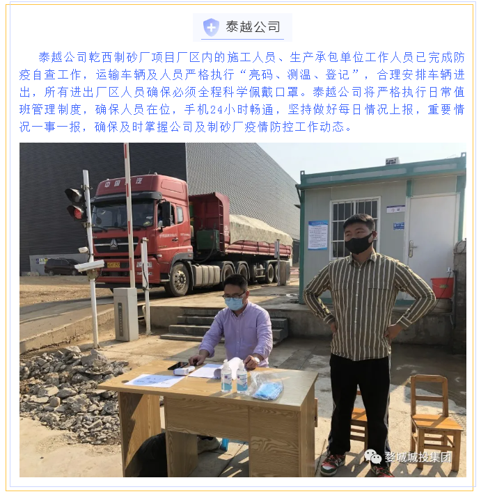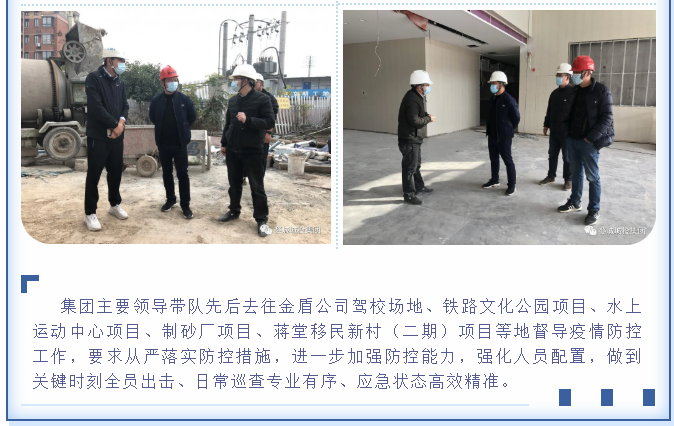 為貫徹落實(shí)省、市、區(qū)疫情防控工作視頻會議精神,婺城區(qū)城投集團(tuán)全員行動,在集團(tuán)疫情防控工作體系的框架下,分別以職能部門和子公司、項目為主體,制定切合實(shí)際、有操作性的疫情防控方案,同時組織紀(jì)檢專班力量,成立督查應(yīng)急小組,對各工地(項目)疫情防控措施設(shè)置情況進(jìn)行督查督辦,集團(tuán)上下全面緊起來、嚴(yán)起來,疫情防控工作氛圍濃郁。
