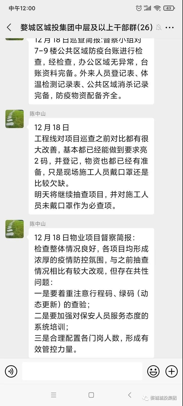 一是由集團(tuán)疫情防控工作領(lǐng)導(dǎo)小組常務(wù)副組長(zhǎng)陳中山牽頭成立督導(dǎo)檢查組,下設(shè)4個(gè)督查小組,督導(dǎo)小組成員放棄周末休息時(shí)間、不舍晝夜分赴在建工地、物業(yè)小區(qū)、文旅項(xiàng)目、高速路口、醫(yī)院門崗等重點(diǎn)區(qū)域督導(dǎo)檢查集團(tuán)疫情防控工作落實(shí)情況,重點(diǎn)督導(dǎo)檢查領(lǐng)導(dǎo)批示指示要求、重點(diǎn)工作、防控措施和應(yīng)急預(yù)案的落實(shí)情況,認(rèn)真組織核查并及時(shí)報(bào)送防控核查信息。二是完善修訂《集團(tuán)疫情防控規(guī)范及工作制度》、《集團(tuán)疫情防控督查表》,明確工作職責(zé)、強(qiáng)化規(guī)范管理,確保督查效率。三是督促建立健全疫情防控臺(tái)賬,明確督查重點(diǎn),狠抓任務(wù)落實(shí)。