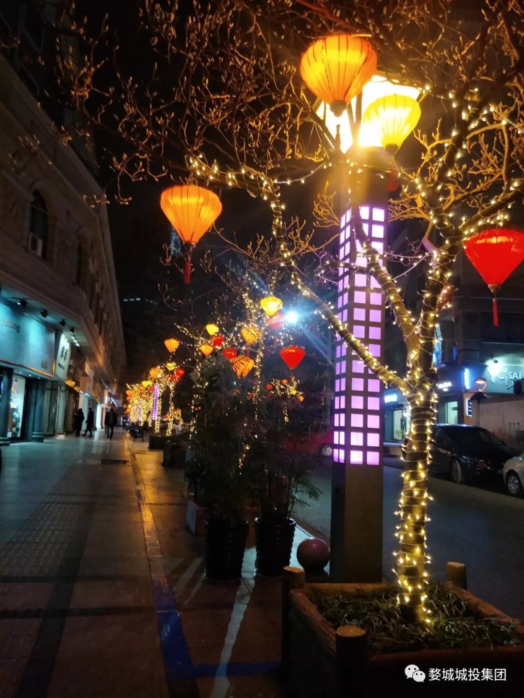 △雅堂街流光溢彩,通園路福瑞呈祥,新城區(qū)火樹銀花。